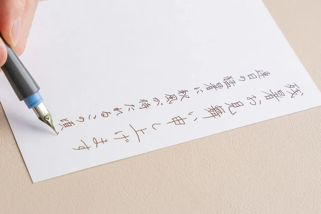この挨拶文には、ほのかに秋を感じさせる茶色として、『SHIKIORI ―四季織― 万年筆用ボトルインク 利休茶』を使用しました。